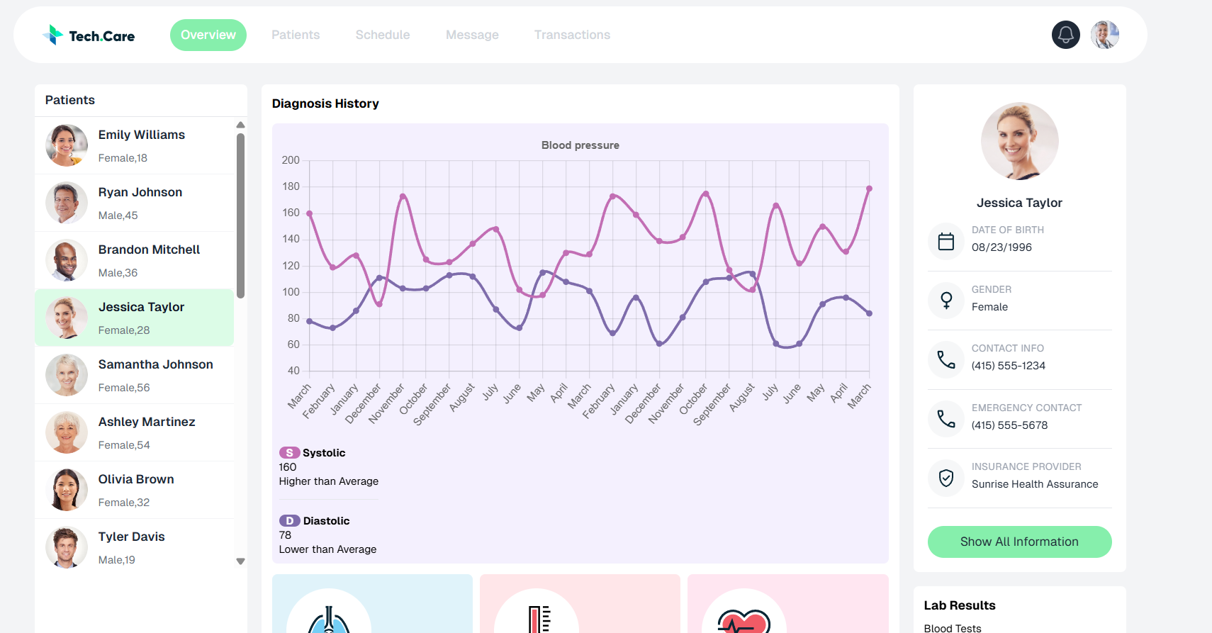 Tech Care – Digital Platform for Modern Healthcare Providers Tech Care is a comprehensive digital healthcare platform designed to help doctors, clinics, and medical professionals manage patient interactions, data, and services more efficiently in a single, secure system. The platform enables healthcare providers to view and manage patient data, track medical histories, and monitor patient progress over time through clear, visual dashboards. With online appointment booking, doctors can streamline scheduling, reduce administrative workload, and improve patient access to care. Tech Care also serves as a centralized medical services platform, allowing practices to present available services, manage consultations, and support data-driven decision-making. Built-in data visualization tools transform patient information into actionable insights, helping practitioners identify trends, monitor outcomes, and deliver more personalized care. Value for doctors and medical practices: Centralized patient data management Online appointment booking and scheduling Patient progress tracking and medical history overview Data visualization for faster clinical insights Scalable platform for clinics and growing practices Tech Care empowers healthcare professionals to focus less on administration and more on delivering high-quality, patient-centric care through modern digital tools.